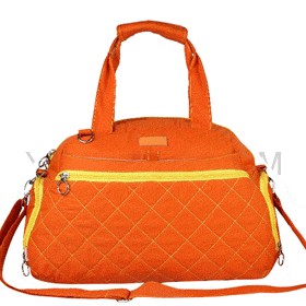 fabric wrapped carrying handle;